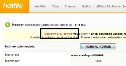 1- İndirme linkine tıkladıkdan sonra resimdeki gibi Hotfile.com dosya indirme sayfası açılıyor. Burada Normal İndirme butonuna basıyoruz.